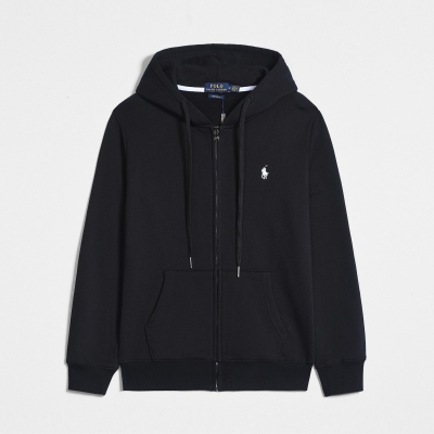 Spring and Autumn Thin Pony Hooded RL Cardigan Solid Color Sweater Embroidered Loose plus size Paul Men's Polo Jacket