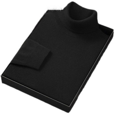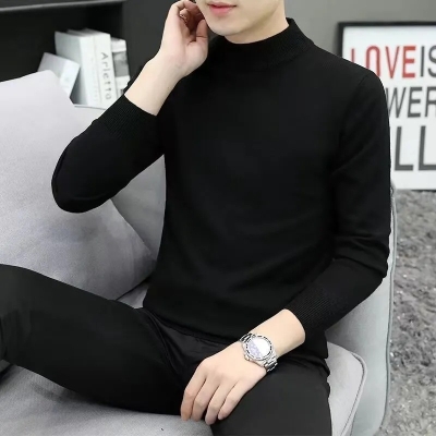 Men's Sweater Half-turtleneck Autumn and Winter Slim-fit All-match Knitted Base Shirt Pure Black Mid-collar Fashionable Sweater