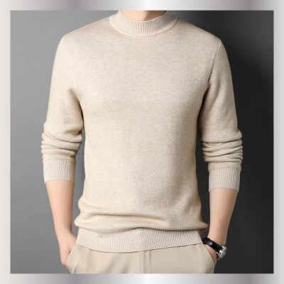 Cross-Border New Spring and Autumn Solid Color Half Turtleneck Men's Sweater Slim Sweater Young Men's Bottoming Sweater Men's Clothing