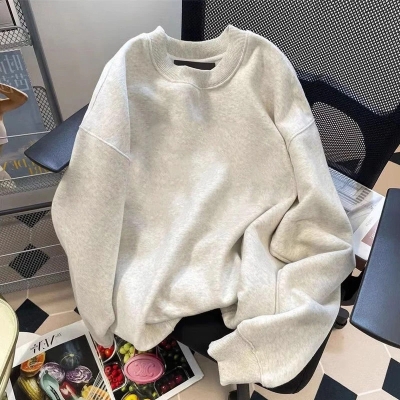 500G Heavy melange gray Crewneck Wear Men's Fall/Winter fleece-lined Warm Long Sleeve T-Shirt American Inner Base Shirt