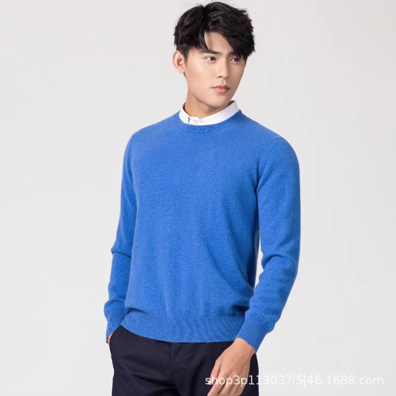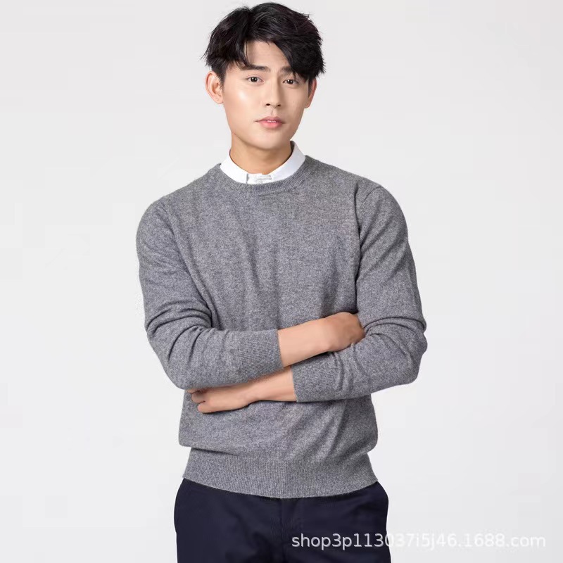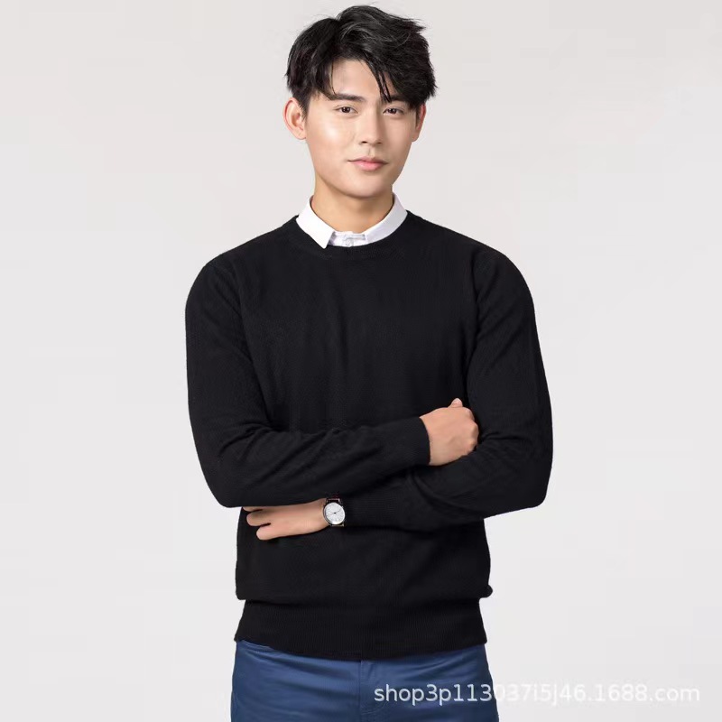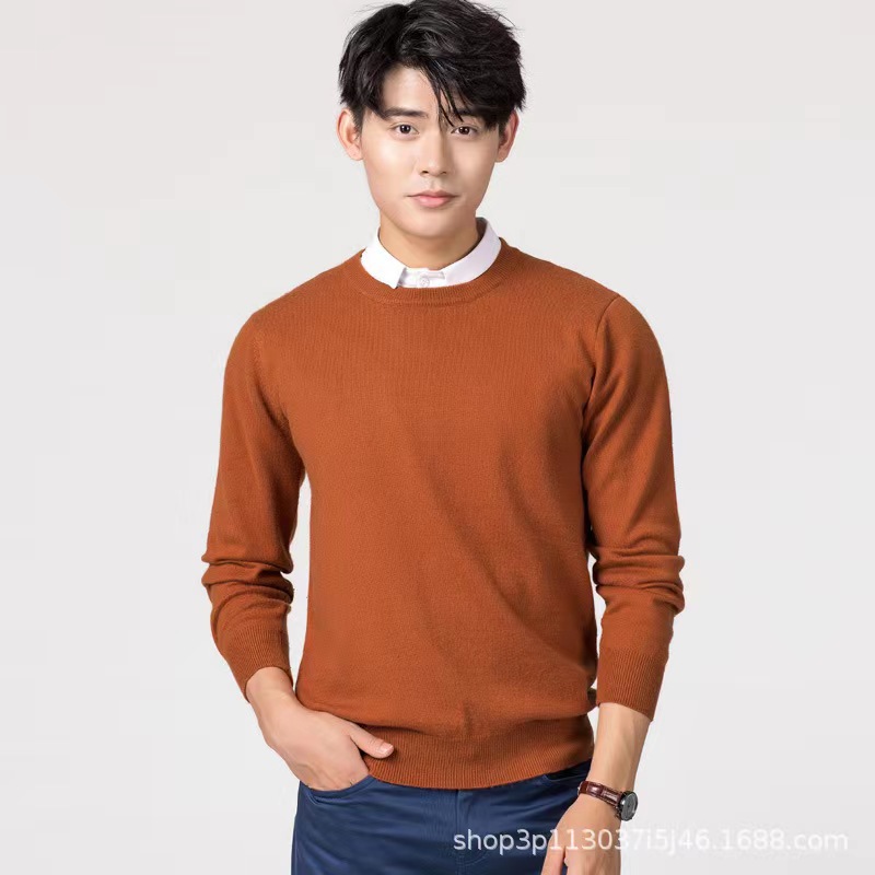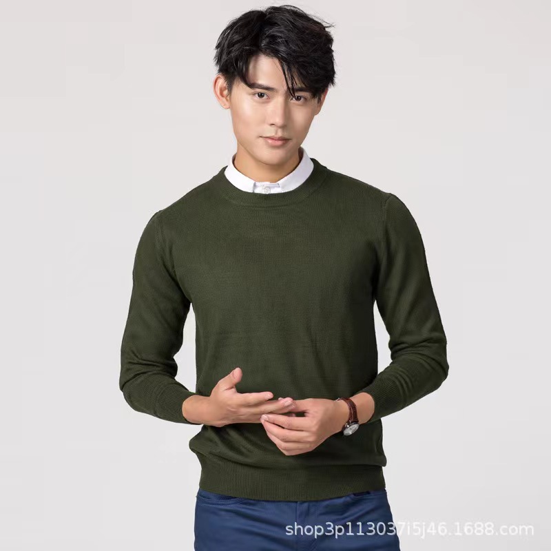 2023 New Autumn and Winter Korean Style Men's Round Neck Large Size Woolen Sweater Knitted Loose Pure Color Men's Sweater Bottoming Shirt