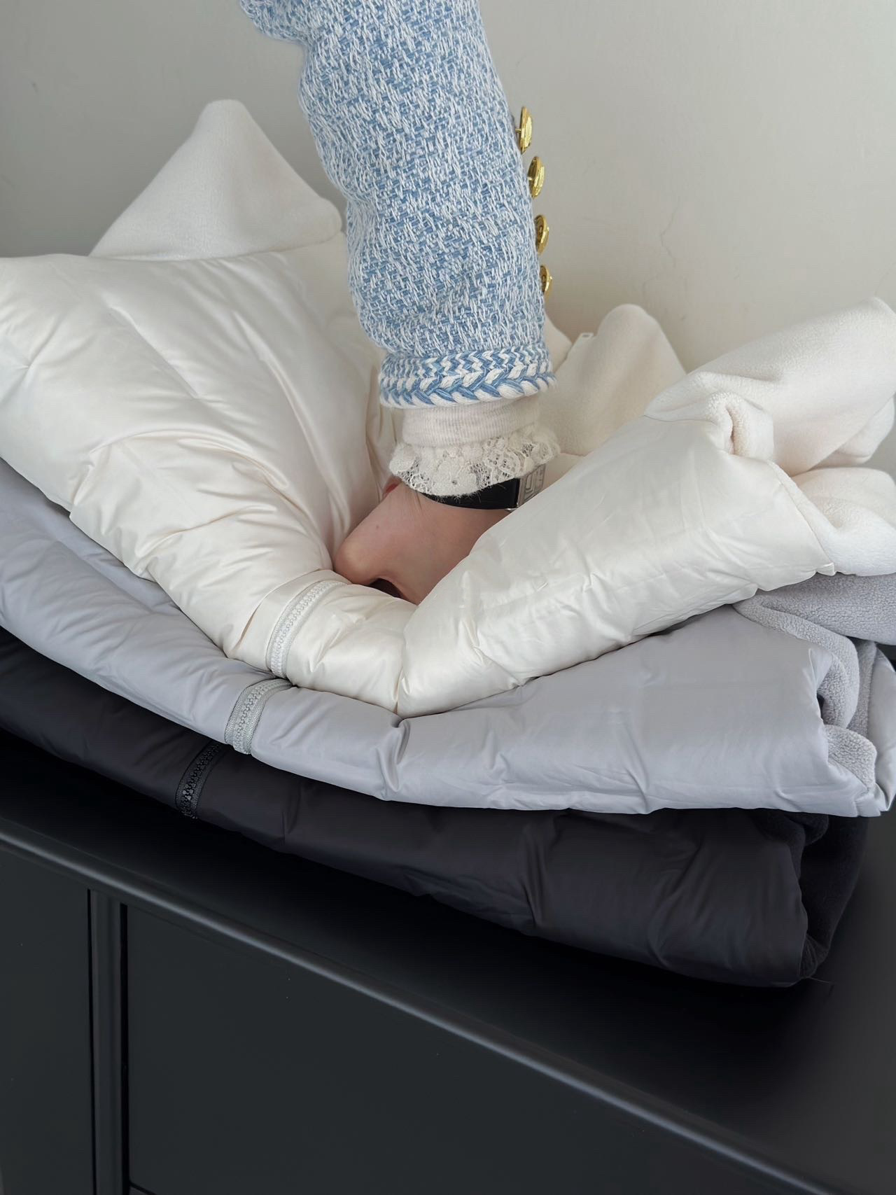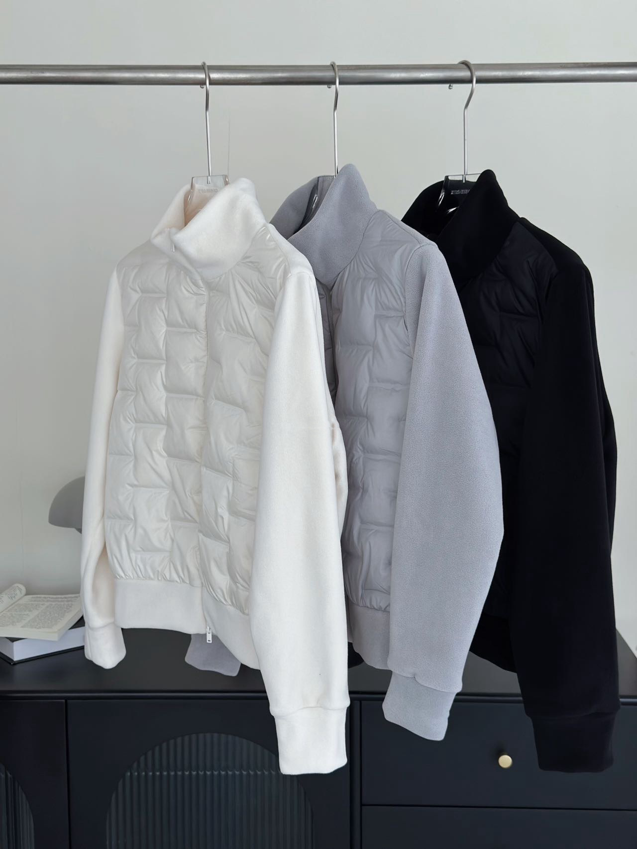 90% White Duck down Casual Quilted Patchwork Fleece Stand Collar Double-Ended Zipper Lightweight down Jacket for Women Winter 9733