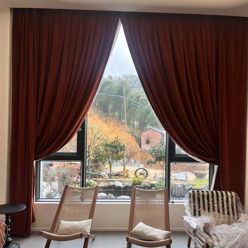 Australian Cashmere Curtain Living Room Vintage Velvet Caramel Brown Light Luxury Thickened Velvet Bedroom Shading Flannel