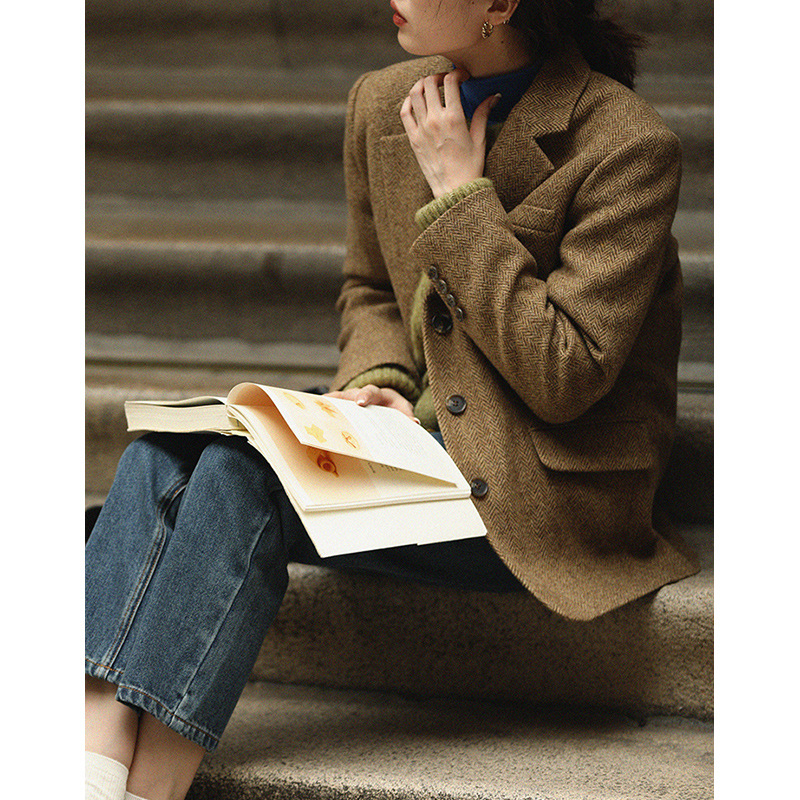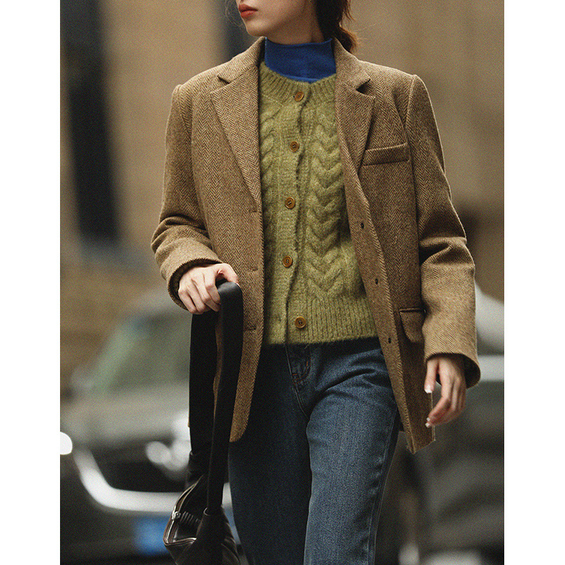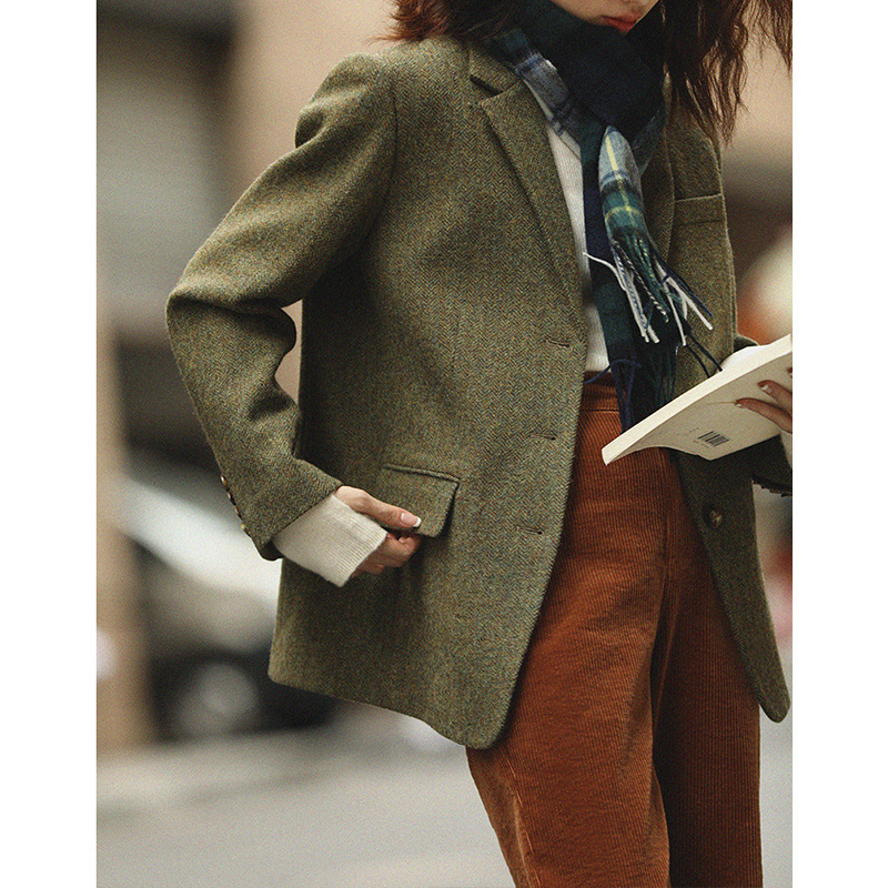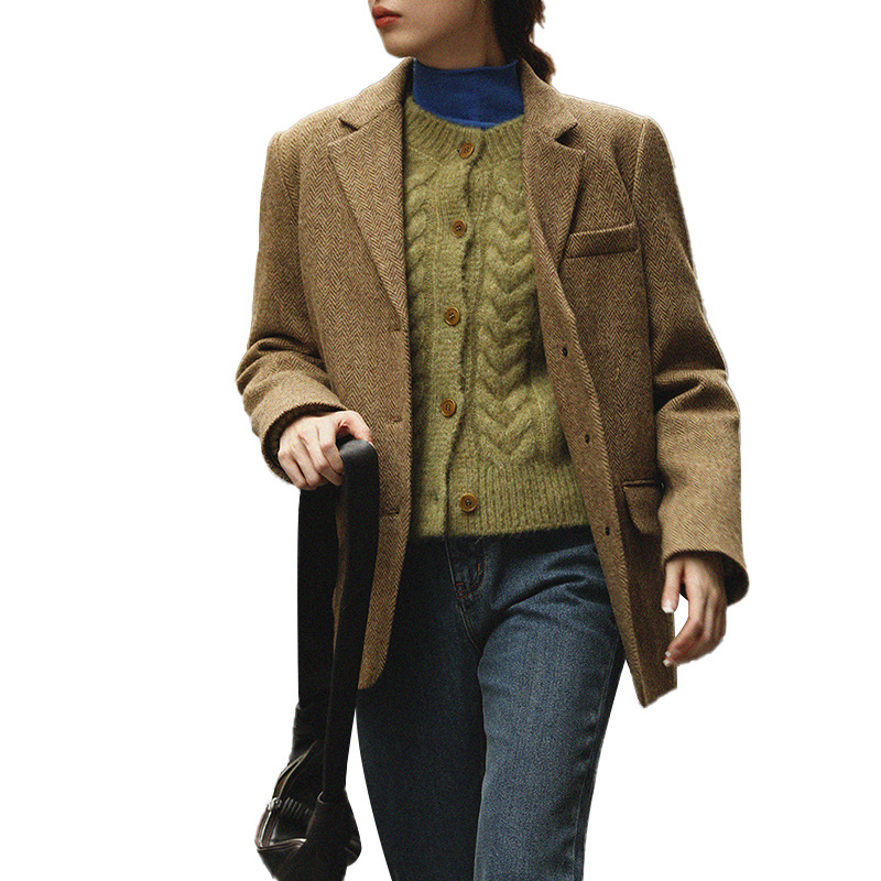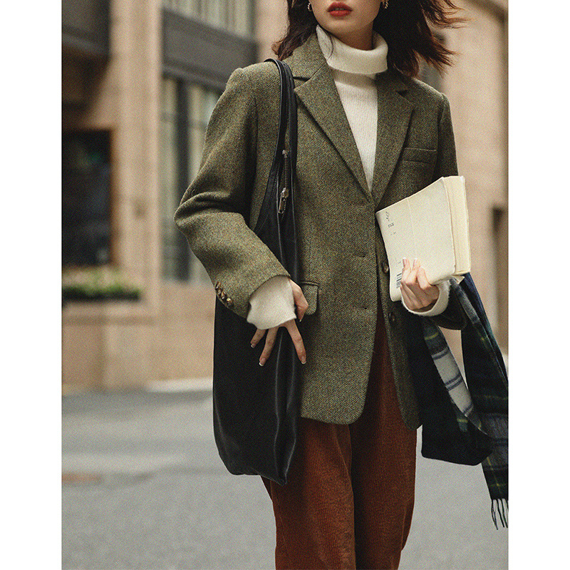 British Elegant Slim Woolen Pure Color Suit Women's Autumn and Winter New 2025 Design Single-Breasted Casual Jacket