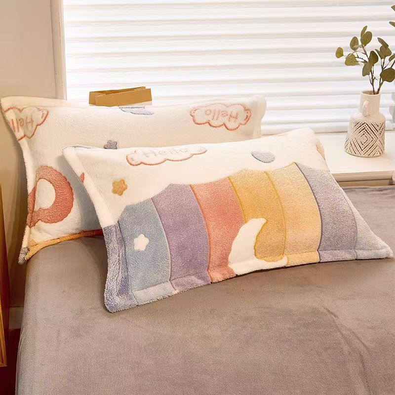 Coral Fleece Pillowcase Pillowcase Pair of Thick Plush fleece-lined Double-sided Fleece Winter Warm Student Dormitory Single Pillowcase