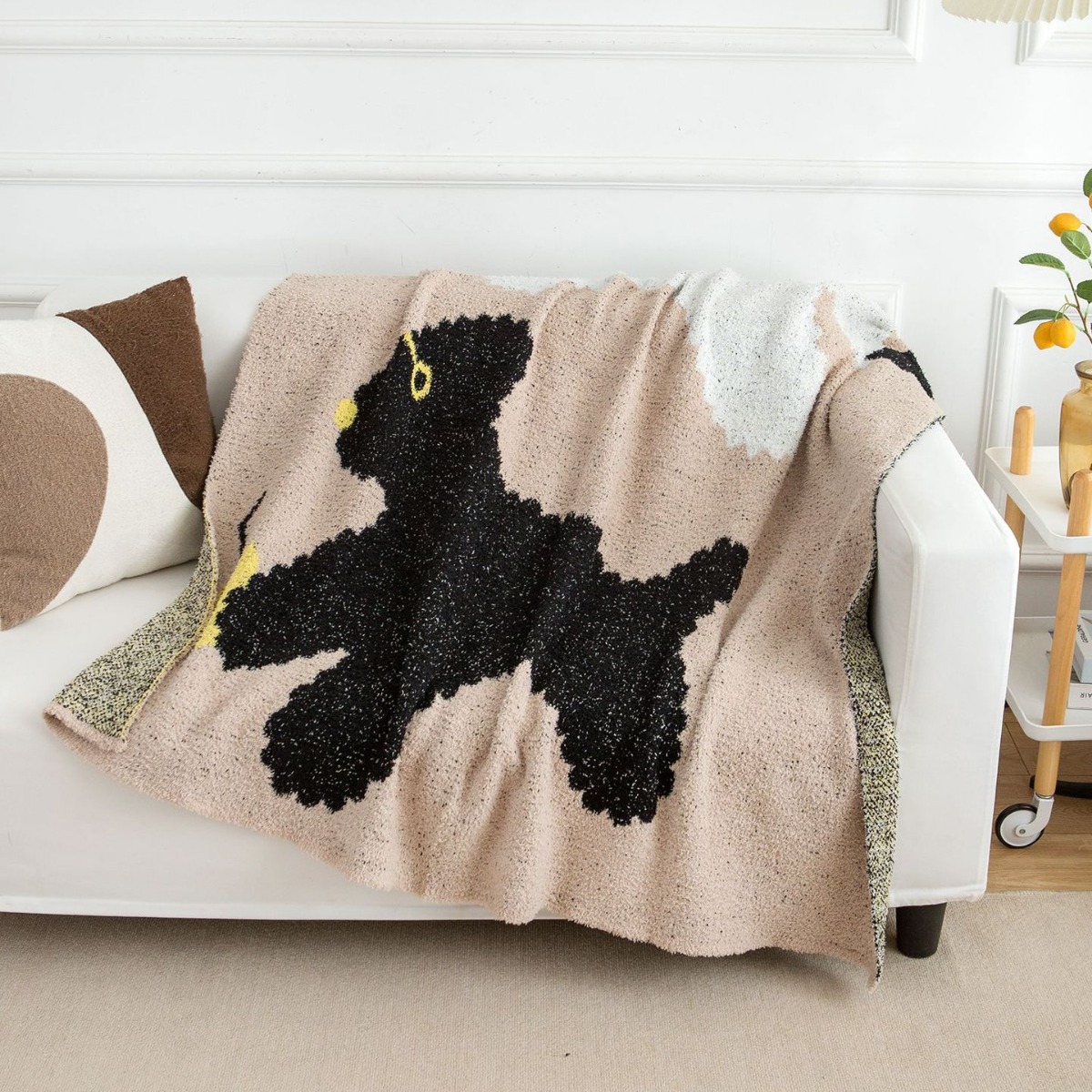 - StyleModern and minimalistColorBlack-half velvet knitted blanket