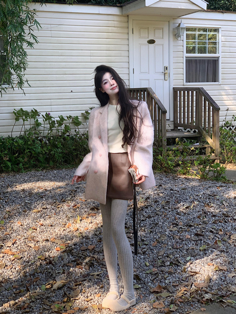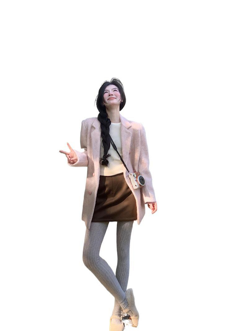 Pink High-end Woolen Coat Women's 2024 Autumn New Korean Style Loose Socialite Elegant Warm Long-sleeved Suit