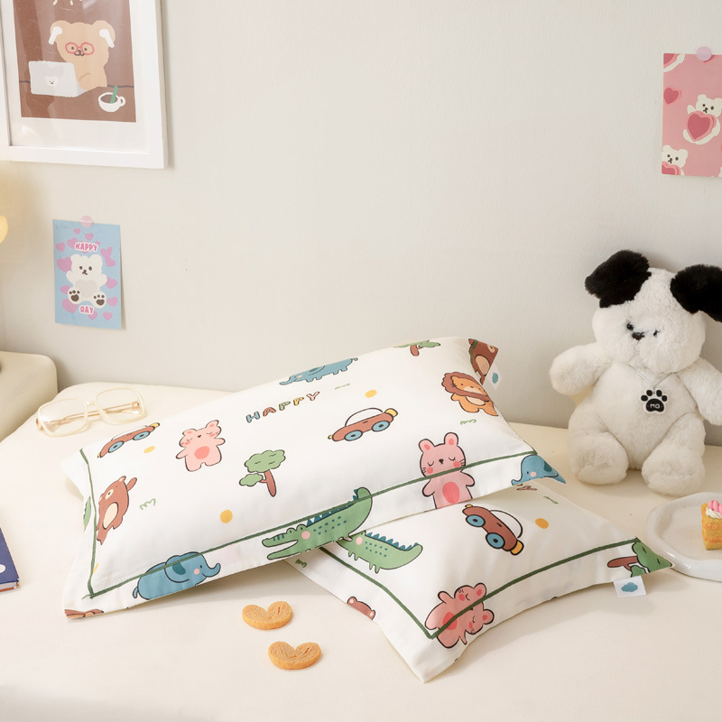 Strict selection of long-staple cotton pillowcase piping children's small pillowcase printed cartoon cotton satin pillowcase silky feeling Four Seasons